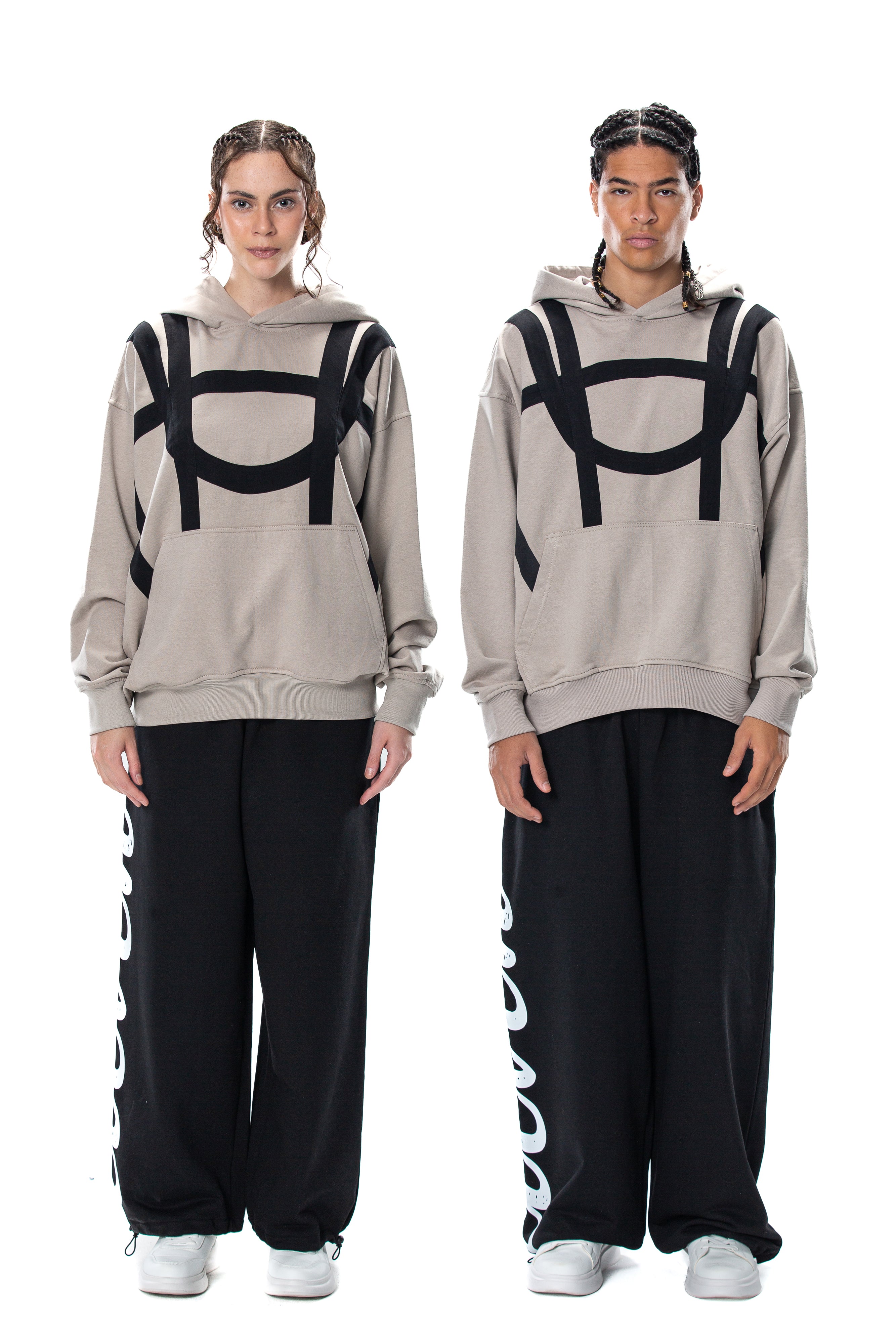 BAIGE HOODIE WITH BLACK LINES